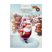 Adventskalender Julmarknad från Simon Coll innehåller 24 minibitar à 5 g av ljus choklad. En klassisk chokladkalender med enkel design och söt chokladbit bakom varje lucka 141 kr | 2